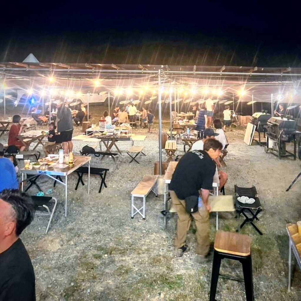 (団体利用後のキャンプは追加料金:1,000円、テントサウナは追加料金:10,000円※薪は各自ご持参ください) - メニュー例:お肉4種(ビーフ、ポーク、チキン、BBQソーセージ)、野菜類4種(ピーマン、しいたけ、サラダ)