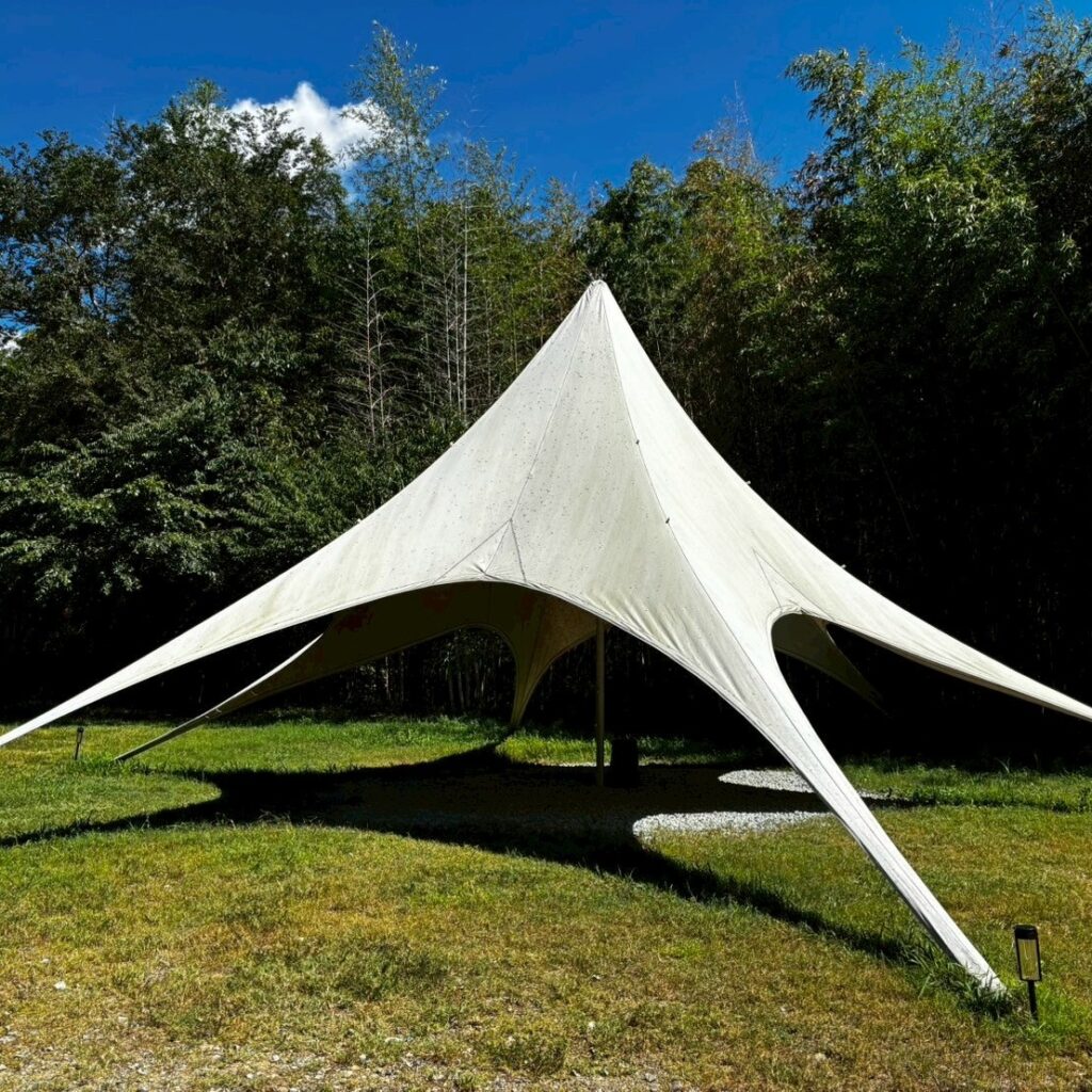 【A:全天候エリア】【B:スターテントエリア】【C:川沿いシェードタープエリア】からお選びいただけます。(予約時○○エリア希望とご記入下さい。)